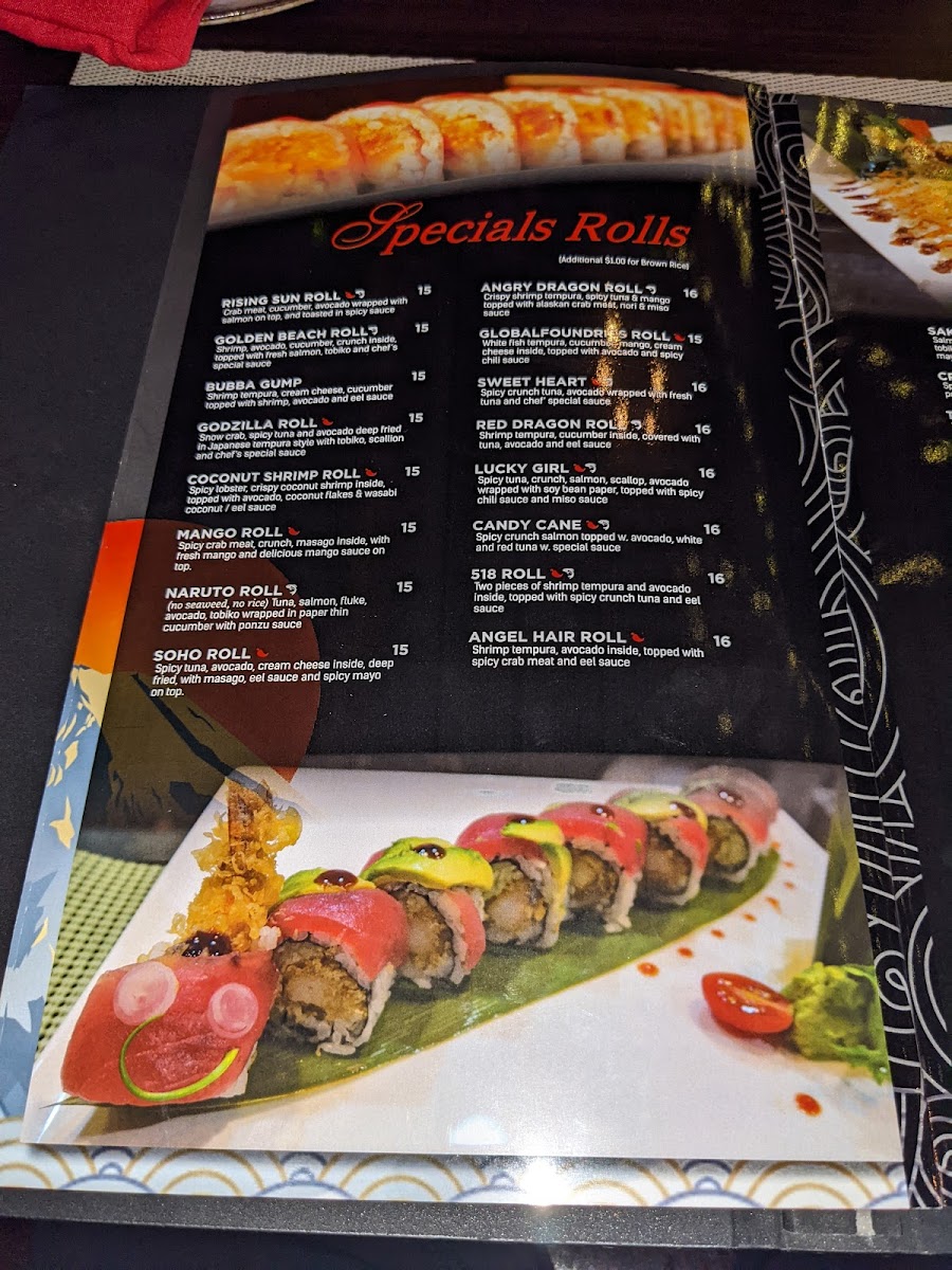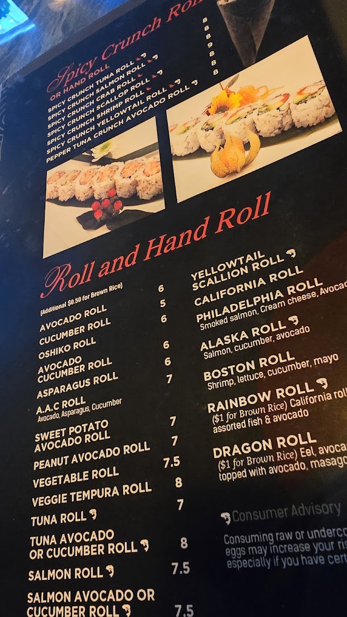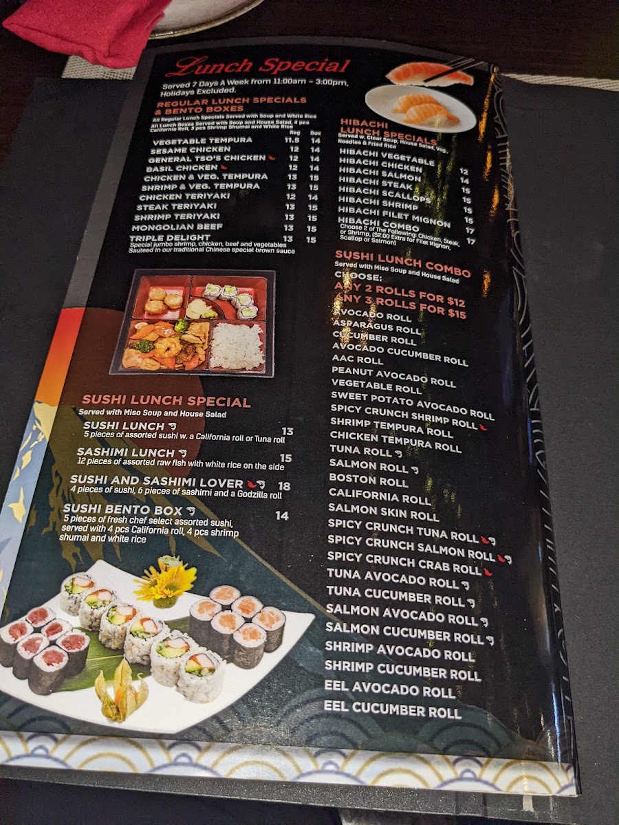 Guests can explore classic rolls like Avocado and Cucumber Avocado, alongside specialty and signature rolls such as the Alaskan Roll or the American Dream Roll, which bring layers of fresh fish and vibrant sauces. Beyond sushi, the menu includes familiar favorites like Sesame Chicken, General TSO's Chicken, and Chicken Pad Thai, offering well-rounded options to satisfy a variety of cravings.