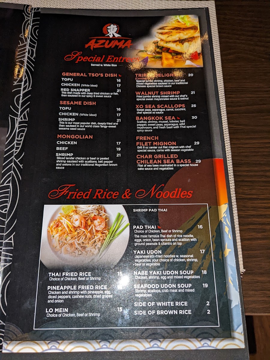 The menu at Azuma Sushi Bistro offers a balanced blend of Asian-inspired dishes, ranging from fresh sushi and sashimi to comforting teppanyaki plates and flavorful Thai specialties. It’s designed to suit casual lunches, relaxed dinners, or quick takeout moments, with a selection that invites guests to enjoy both light bites and more substantial meals.